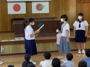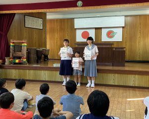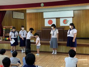 今日の全校朝会では歯の標語の表彰式が行われました!