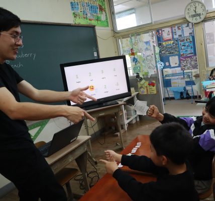 今日は、今年度最後の授業が行われました。英語の授業では、5・6年生と後…