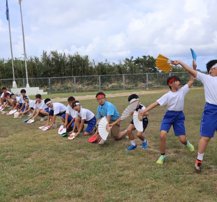 三島片泊学園では,来週土曜日の運動会に向けて一生懸命練習をしているとこ…