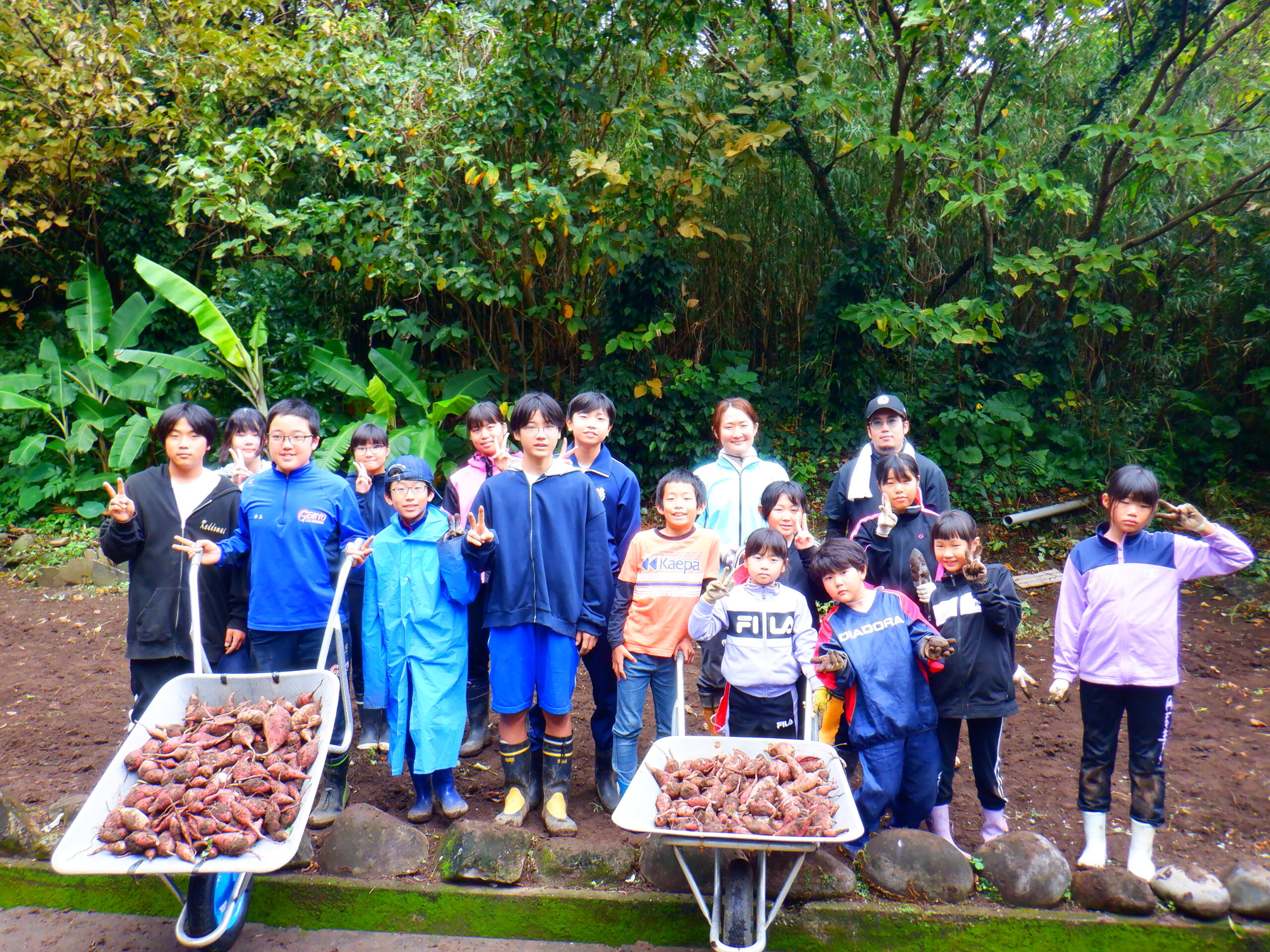 今日の2・3校時にいも苗植えが、ありました。 焼酎蔵「無垢の蔵」の方に…