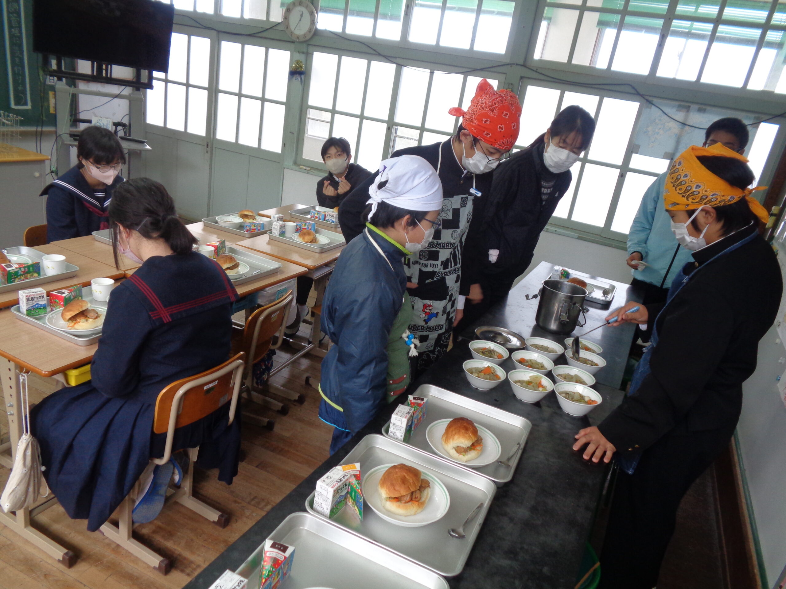 いつもは給食を各学年の教室で食べますが,今日はみんなで食べました。しか…
