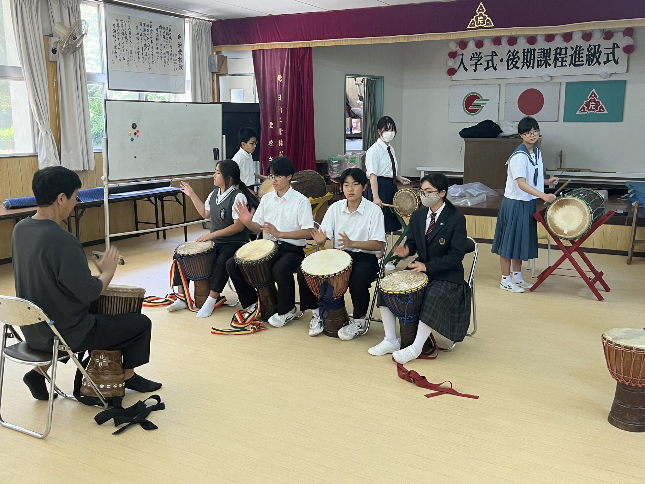 今日は徳田先生がいらっしゃって、6校時にジャンベ教室がありました。 演…