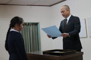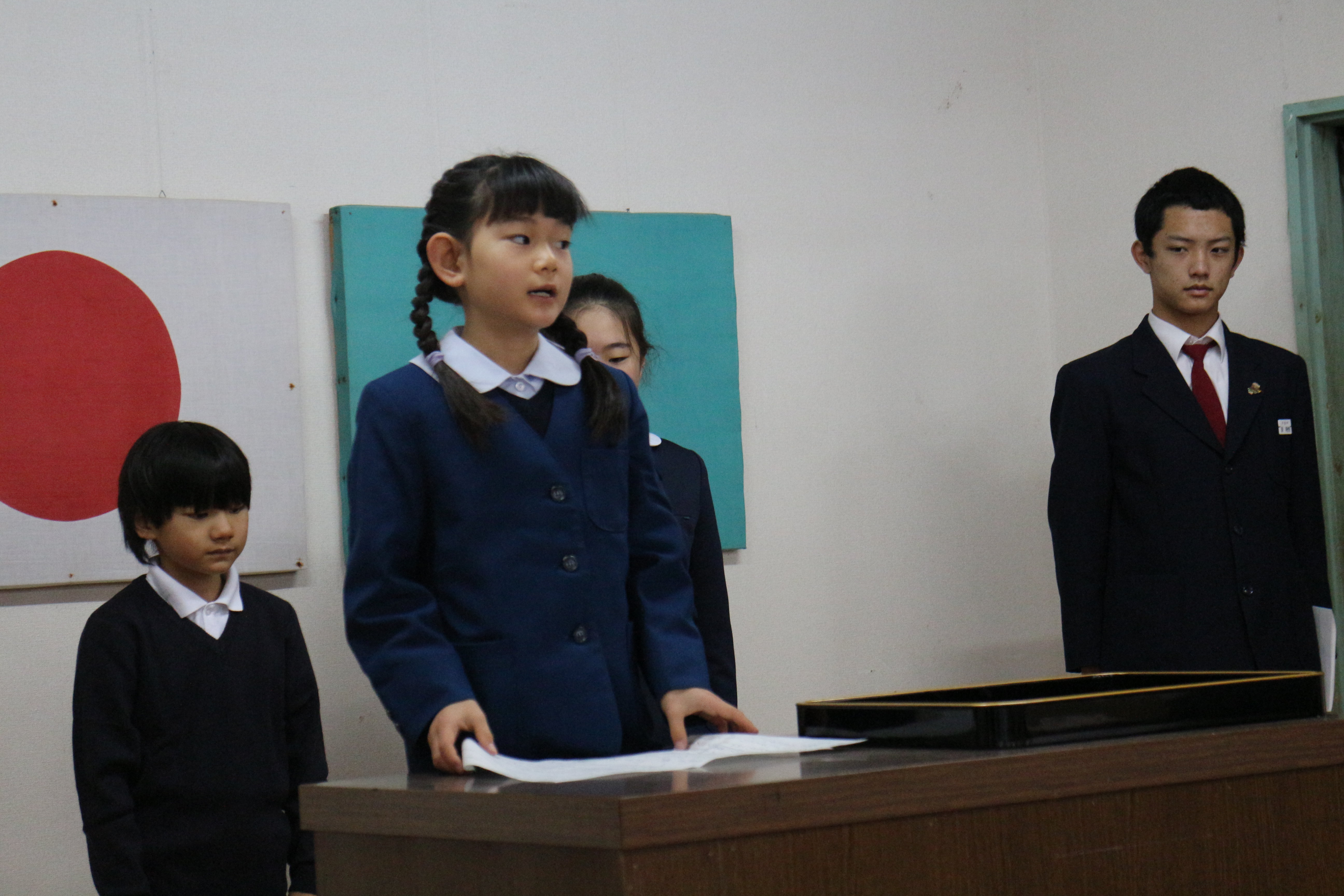 二学期最後を迎えました。受賞伝達式では,各種コンクールの賞状が授与されました。終業式では,代表児童生徒が,2学期に頑張ったことや今後の目標を発表しました。校長先生は,本校の校訓を考えるお話をしてくださいました。たくさんの行事で培った「かしこく(向学)」「やさしく(友愛)」「たくましく(不屈)」をこれからも育てていきましょう。また,元気に始業式を迎えましょう。