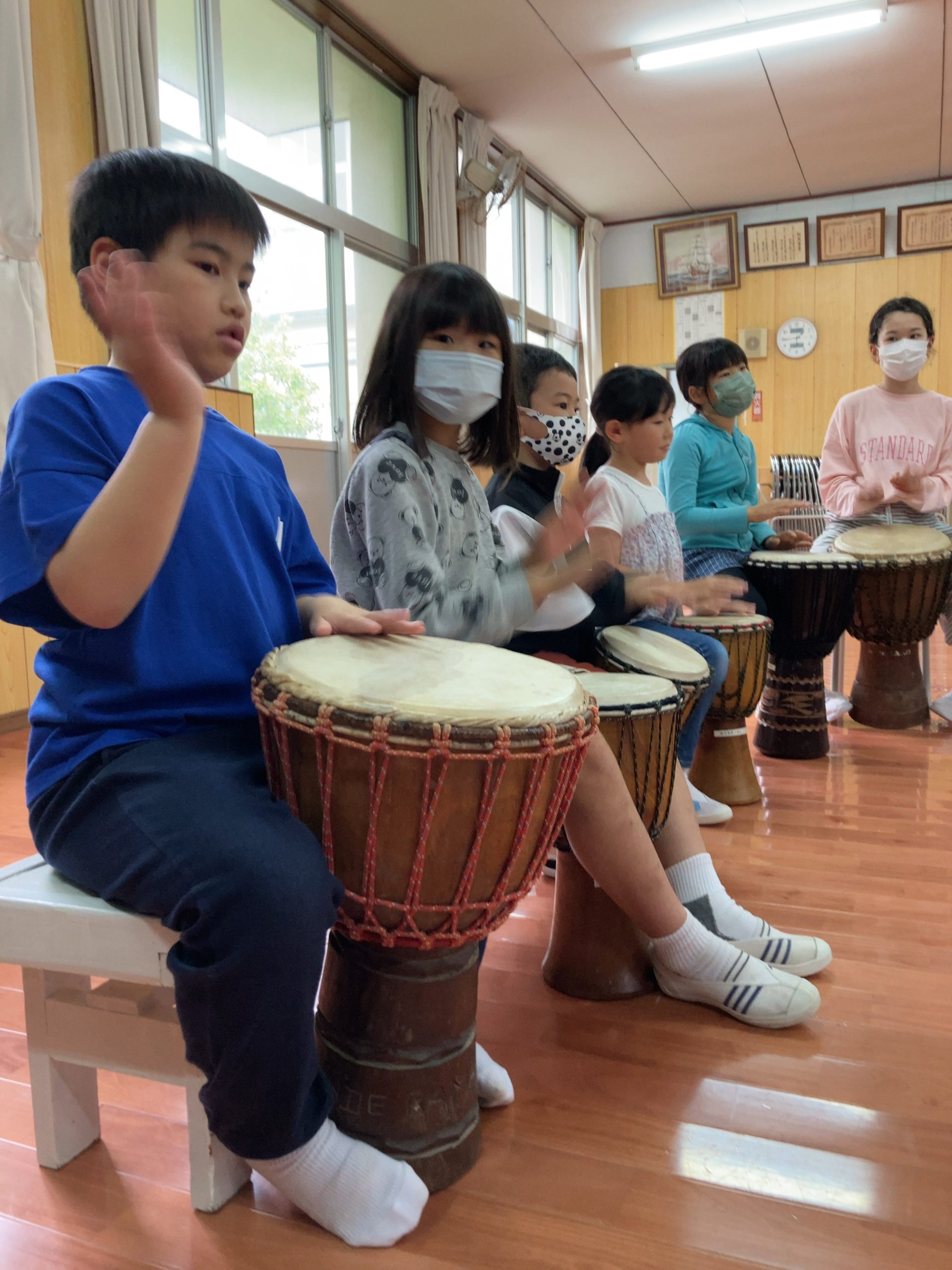 本日の昼休みは、ジャンベの練習がありました! 後期課程の子どもたちが、優しく丁寧にジャンベを教えてくれてました。前期課程の子どもたちも、一生懸命練習していました。
