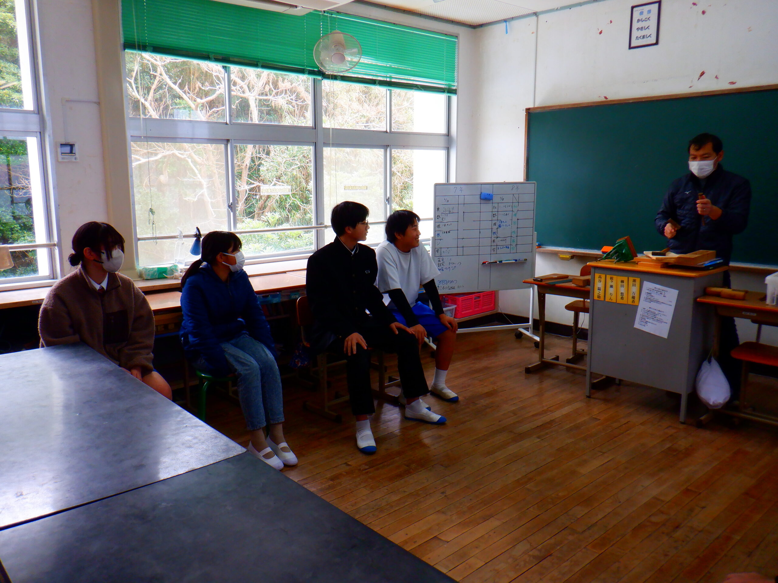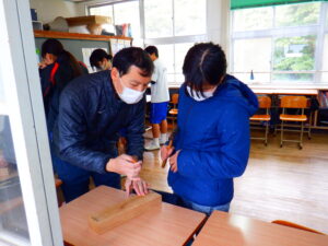 現6年生の児童が、後期課程の授業を体験しました。前期課程にない授業ということで、今日は技術の授業でノミで穴を開ける体験をしました。初めてノミとげんのうを使うということでしたが、先生や後期課程の生徒のアドバイスを受けて上手に穴を開けていました。