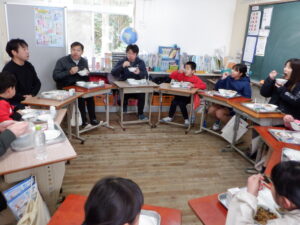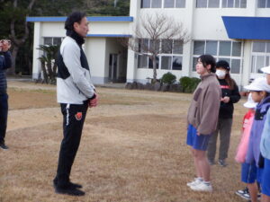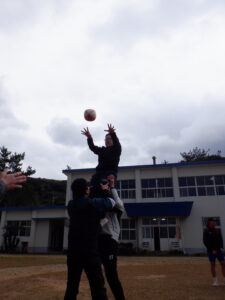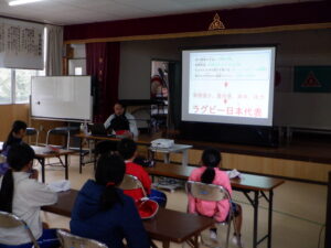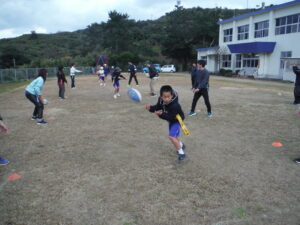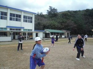 今日はラグビー元日本代表の大野均選手と日本テレビの新谷保志さんが来てくださいました。 ずっとやっていた野球では芽が出ず,大学から始めたラグビーで才能が開花し 2004年には日本代表に選出され,ラグビーワールドカップにも3回出場したそうです。 写真を交えていろいろな話をしてくれました。 その後,校庭でラグビーの実技指導をしてくれました。 給食も一緒に食べ,昼休みは子どもたちと一緒にケイドロをしてくれました。 大野選手,新谷さん。また,来てくださいね。
