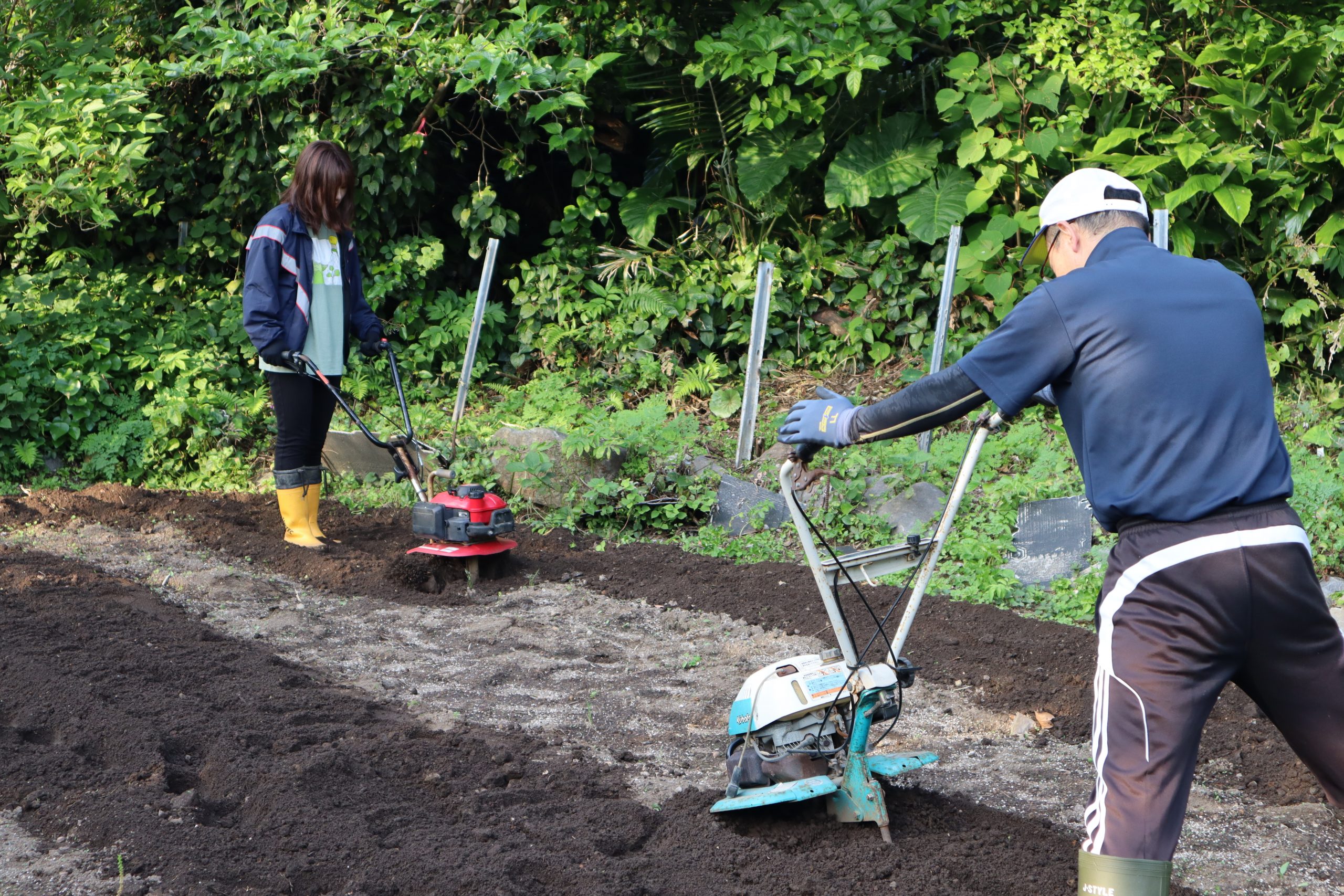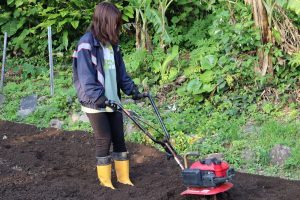 途中混油をしてしまい,耕運機が動かなくなるというハプニングもありましたが,担当の先生方が匠の技で耕してくださいました。