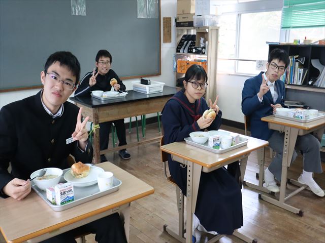 今日は9年生最後の給食でした。義務教育最後の給食は,ケーキもついていて,思い出深いものとなりました。これまで給食を作ることに関わってくださった方々に感謝の気持ちを持ちながら食べました。本当に9年間ありがとうございました。(*^▽^*)