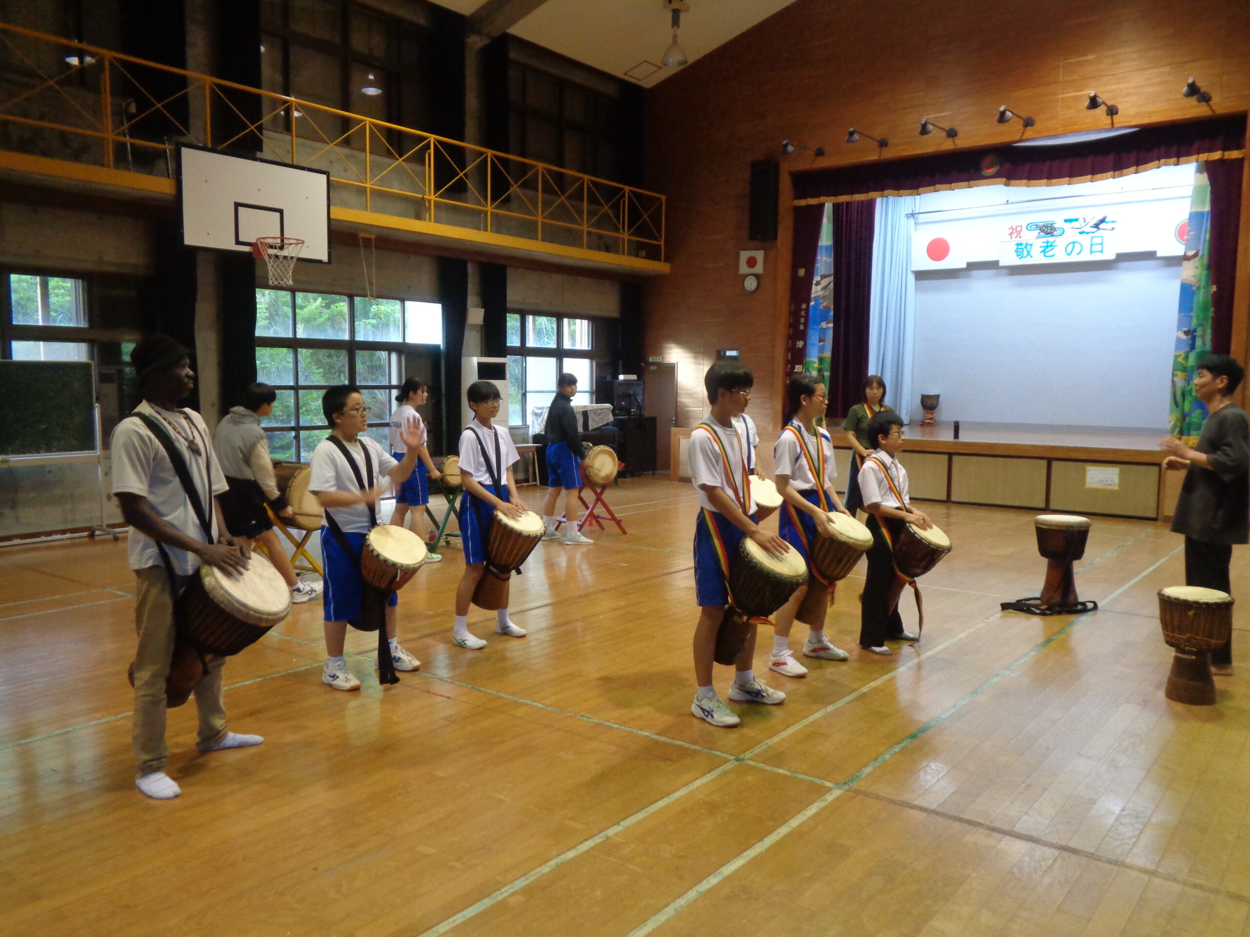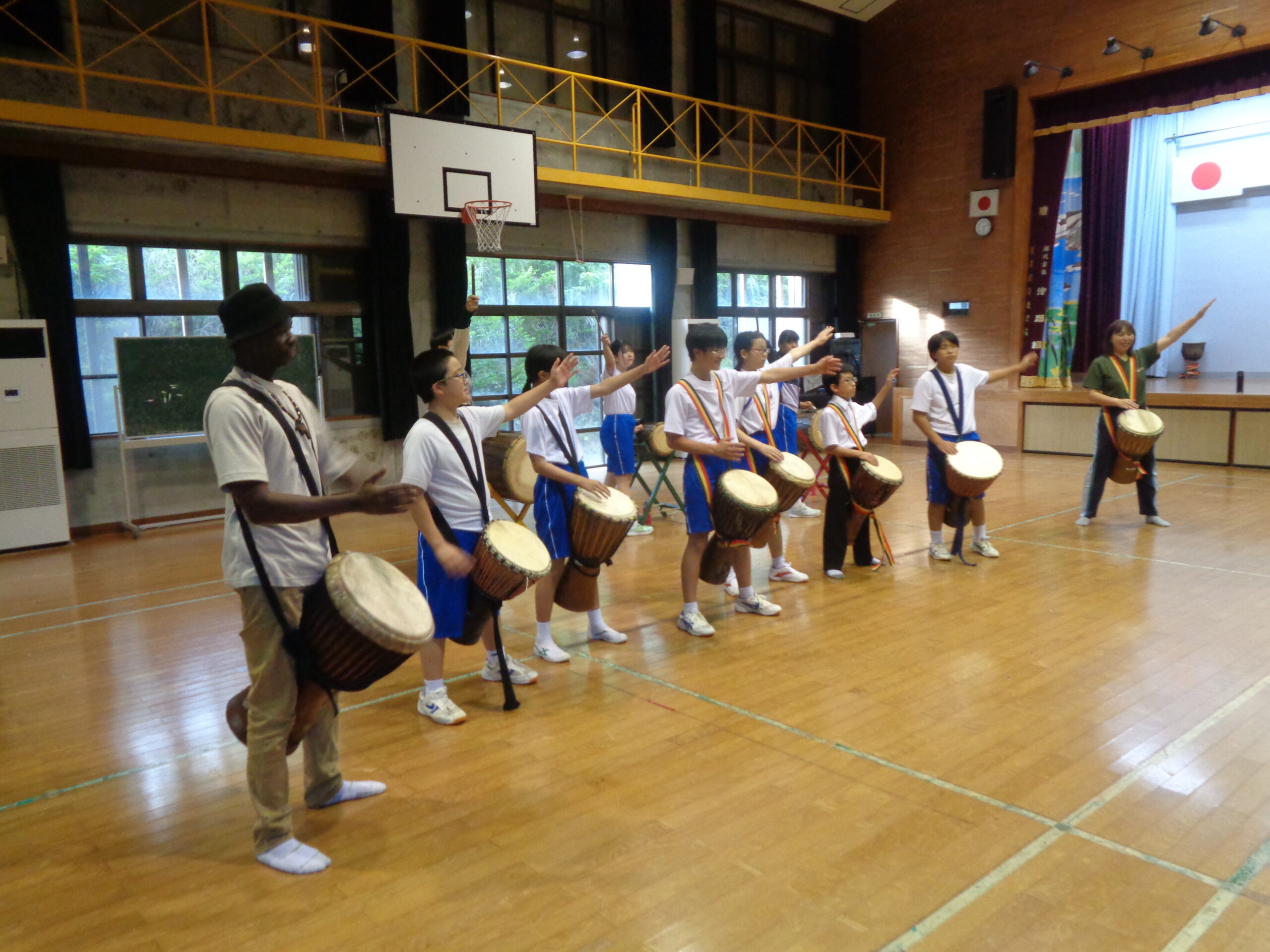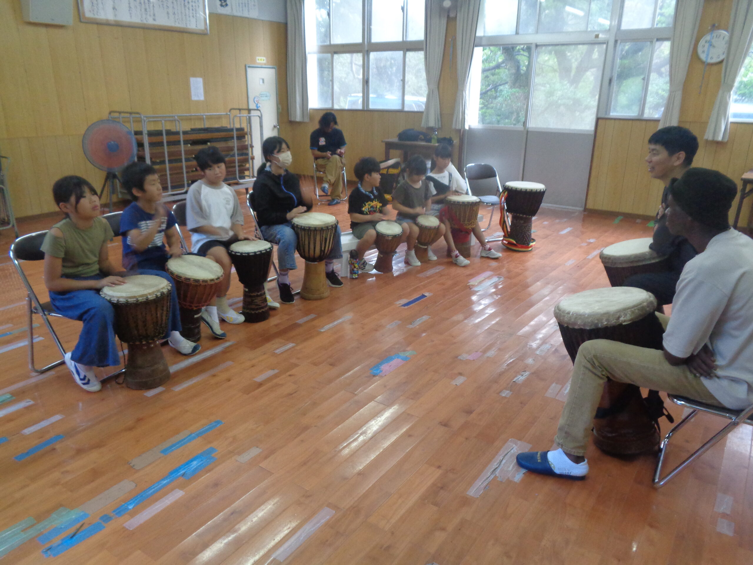 この日はジャンベを教えてくださる徳田先生,セク先生,小湊先生に来校していただき,前期課程生・後期課程生それぞれに指導をしていただきました。ジャンベを楽しむ子どもたちの様子を紹介します。