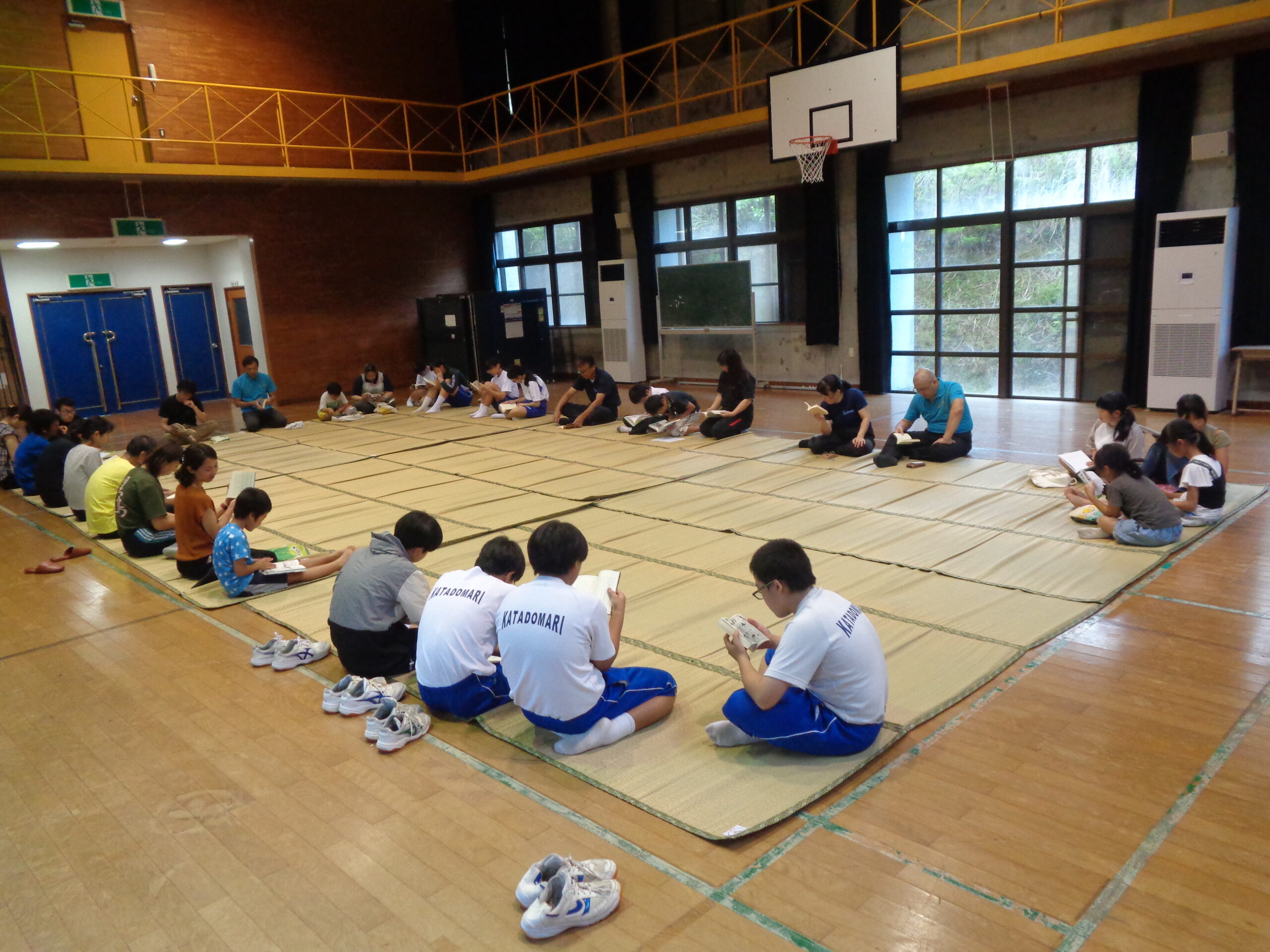 放課後のジャンベ練習の後は,本校が毎月1回実施している「本も友達20分間運動」がありました。子どもと保護者が一緒になって,20分間静かに読書をします。子どもにとっても,大人にとっても,じっくりと本に親しむことができるすてきな時間となっています。