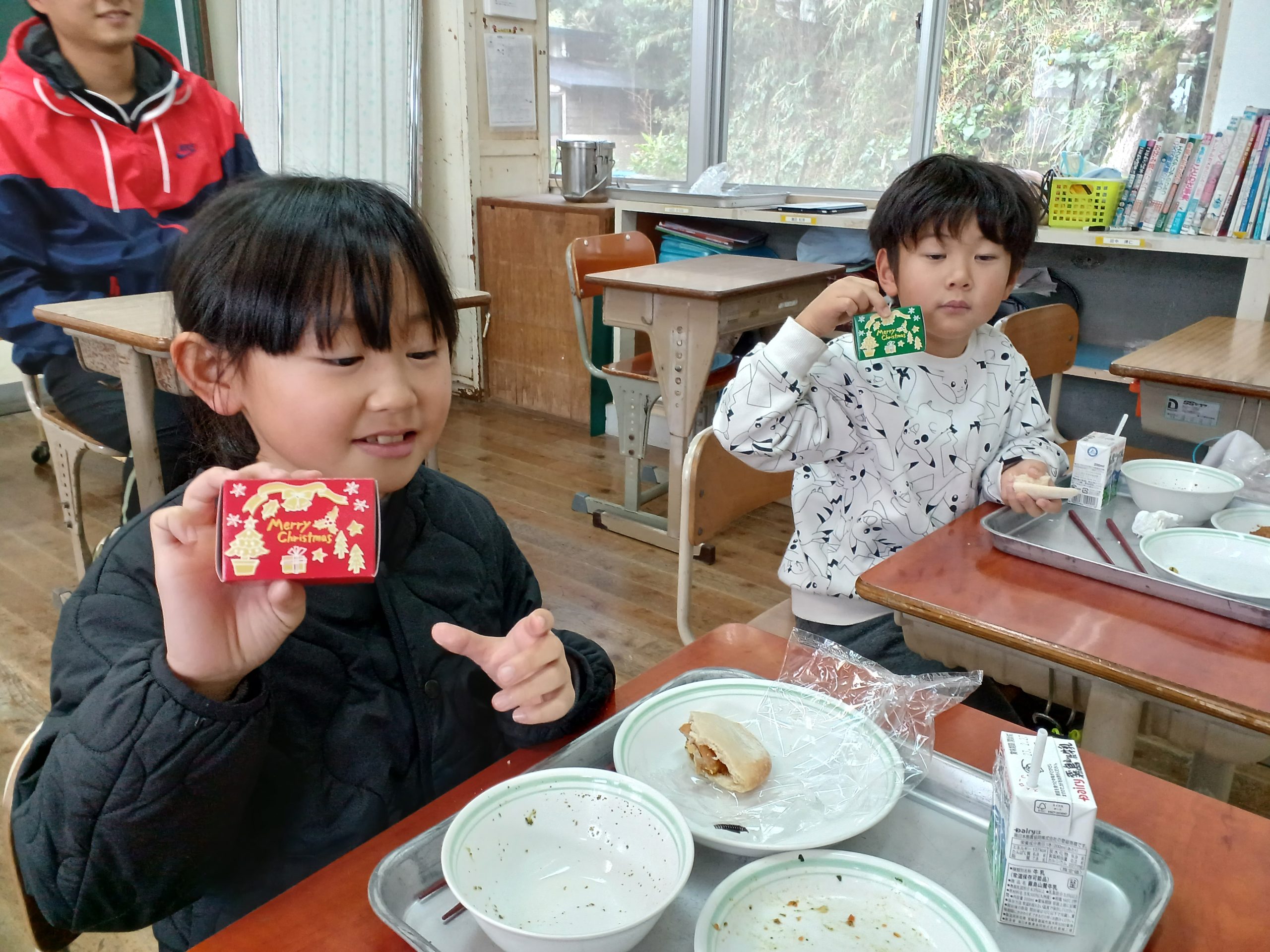 今日は2学期最後の給食でした。ピタパンに鶏肉や野菜を挟んで、美味しくい…