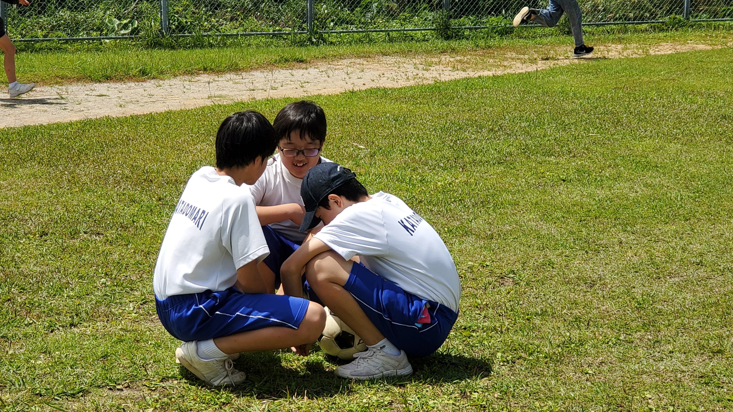 今日は,月に1回のみんなで遊ぶ日。 前期課程と後期課程全員で,ボール蹴…