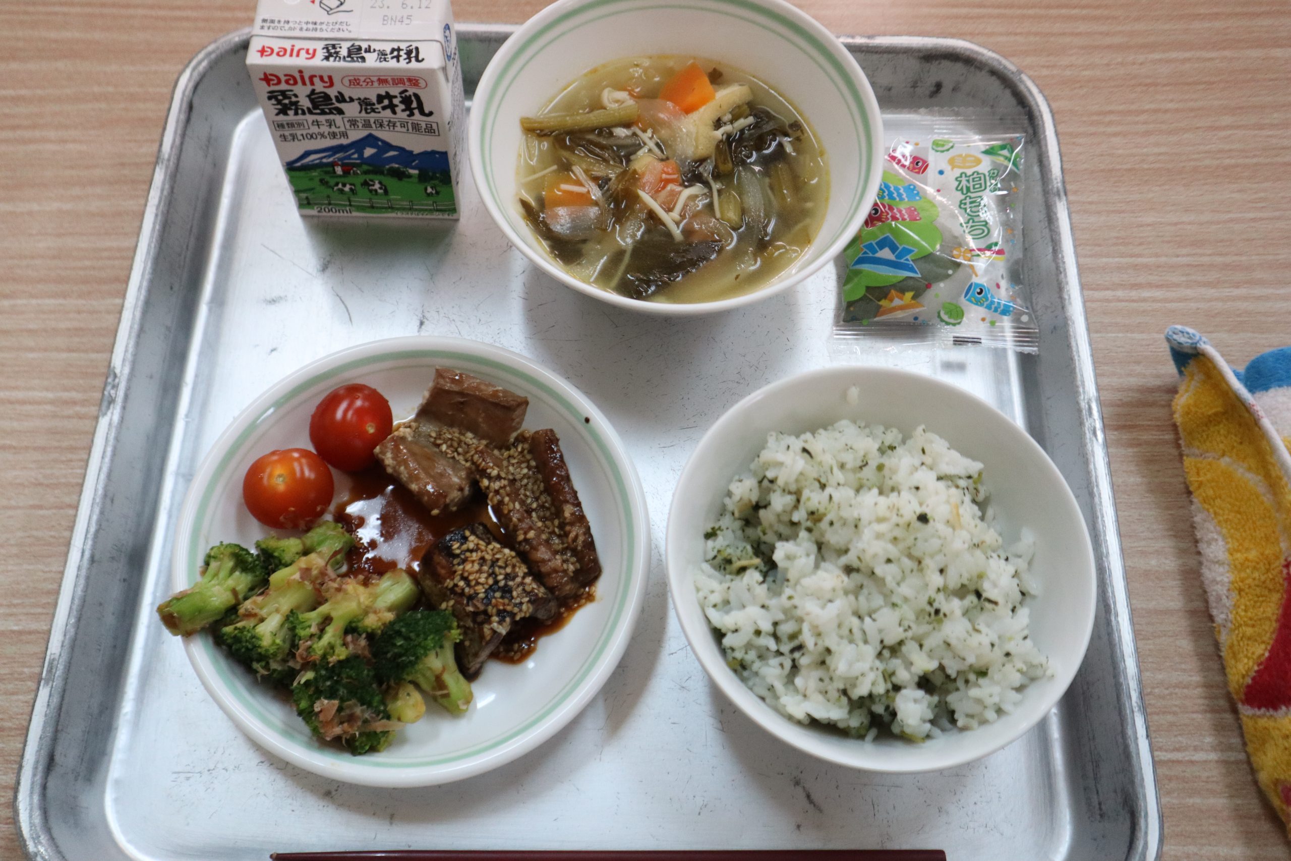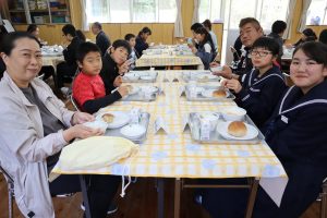 三島片泊学園の学校給食は校舎にある給食室にて、職員の方が毎日、おいしく温かい給食を作っています。