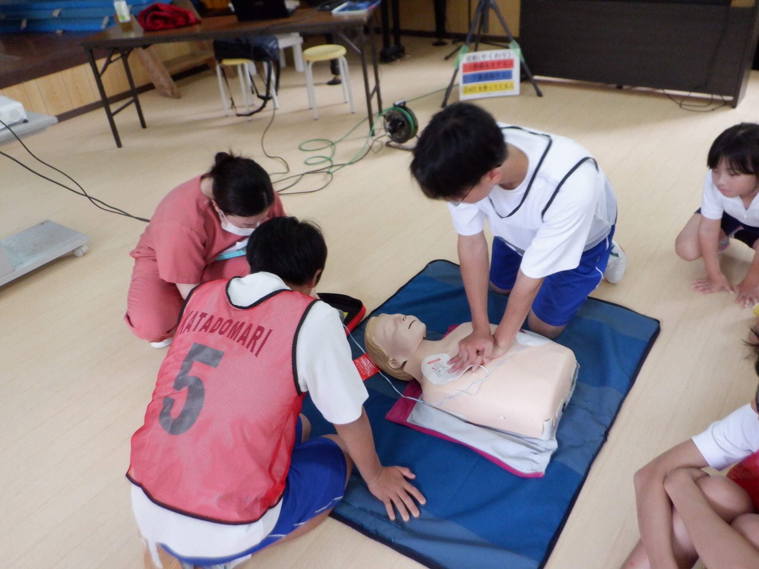 今日の放課後、地区と合同で心肺蘇生法講習会を行い、緊急時の対応方法を学…
