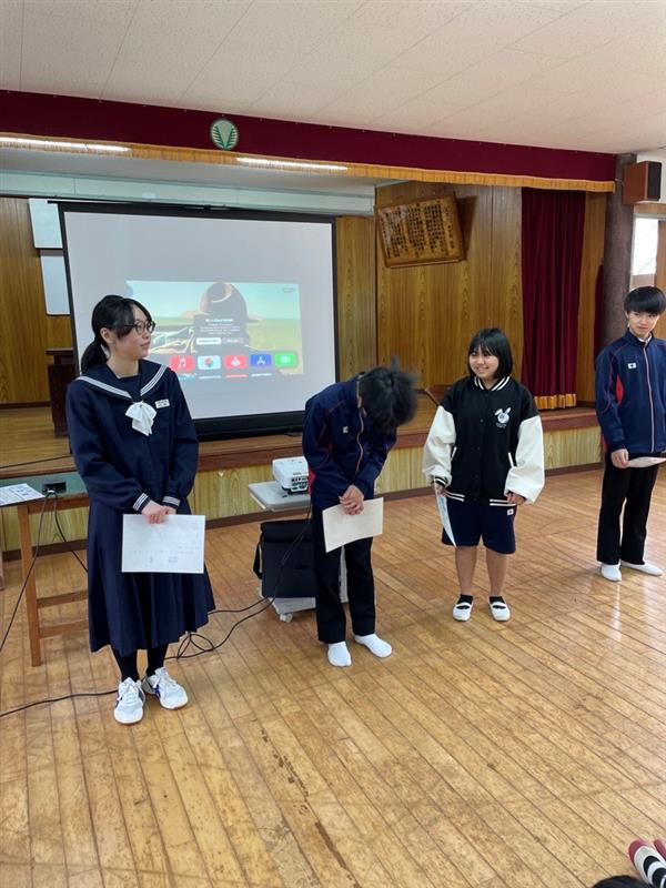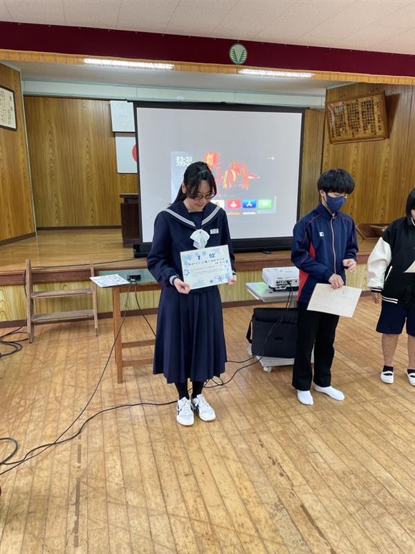 大里俳句の旅 表彰式 投稿者: 三島村立 三島大里学園 2024年1月25日2025年4月4日 昼活の時間に「大里俳句の旅」の表彰式がありました。 児童生徒の投票による集計です。 担当の先生から賞状が手渡されました。 受賞者から、どういう気持ちで書いたかのコメントがありました。 想像した気持ちを書いた人もいました。 素敵な表彰式でした。