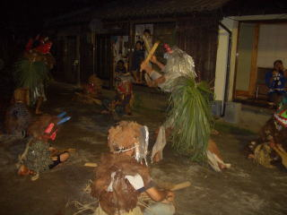 黒島の伝統芸能の「弓矢踊り」と「面踊り」です