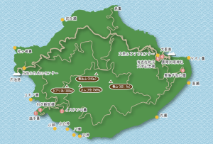 ◯ 黒島の周囲は約20.1km,面積約15.51k㎡