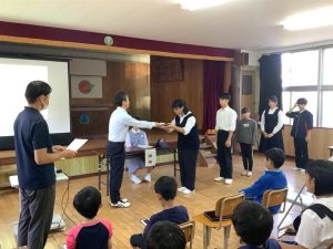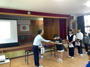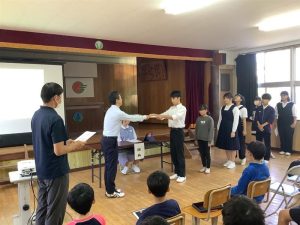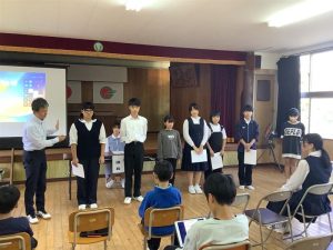 前期児童生徒会を引っ張ってくれた生徒会長ならび旧役員が挨拶をしてくれました。