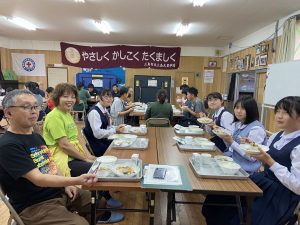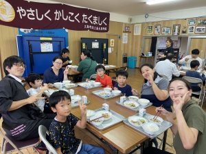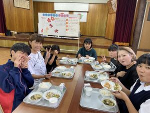 楽しく美味しく食べていますね。今日の給食は特別な感じがしました。