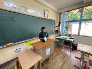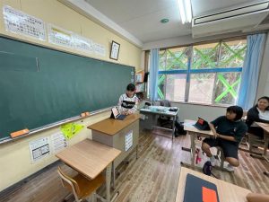5校時 明日のワンデークルーズジオガイドの時に,黒島のことを紹介する発表練習をしました。