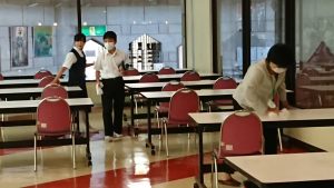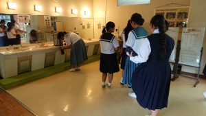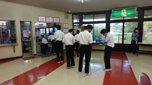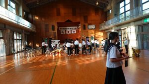 起床後,清掃・朝食そして退所式と忙しい朝となりましたが,今日は枕崎市立桜山中学校を訪問,お魚センター(枕崎市)での昼食,南溟館でのお昼のコンサート,鰹節製造関連施設見学,そして池田湖(指宿市)を経由して指宿市内のホテルへと向かいます。