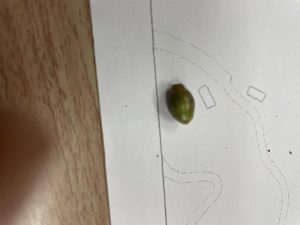 下の写真は青いドングリです。たぶん、桜の木の下にあったので桜のドングリでしょう。