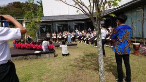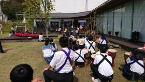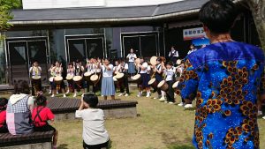 昼からは,南溟館でミニコンサートを鑑賞。第2ふじ保育園の4歳以上の園児の皆さんの太鼓演奏を聴きました。また,ここでもジャンベ演奏を披露です。