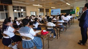 そして,枕崎水産加工協同組合の方に鰹節についての説明を聞き,鰹節を削る体験をさせていただきました。家ではなかなかすることのできない貴重な体験です。うまく削れたかな?