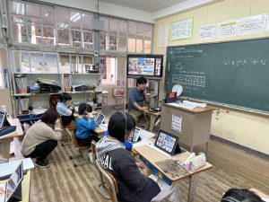 前期児童は全員タブレットで参加しました。