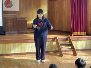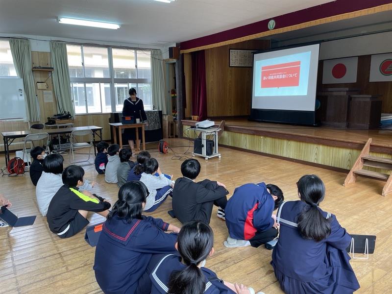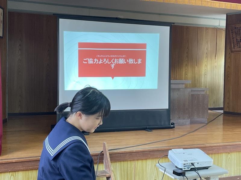 学習文化部の部長さんから赤十字社の赤い羽根募金について説明してもらいました。