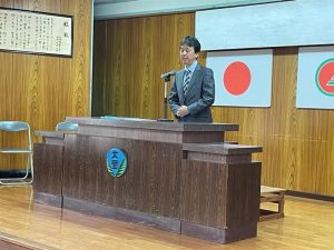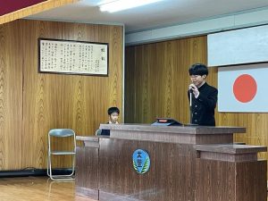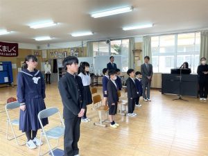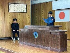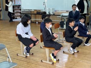 校長先生から、「能登半島地震や日本航空機の火災事故に対して黙祷しましょう。」と呼びかけれ、全員で黙祷を行い、被災者に対して思いを馳せました。