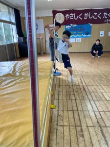走り高跳びのこつをおしえてもらっています。