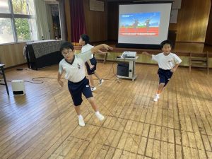 子どもたちは、楽しくやっていました。真剣にやるととても疲れる運動でした。