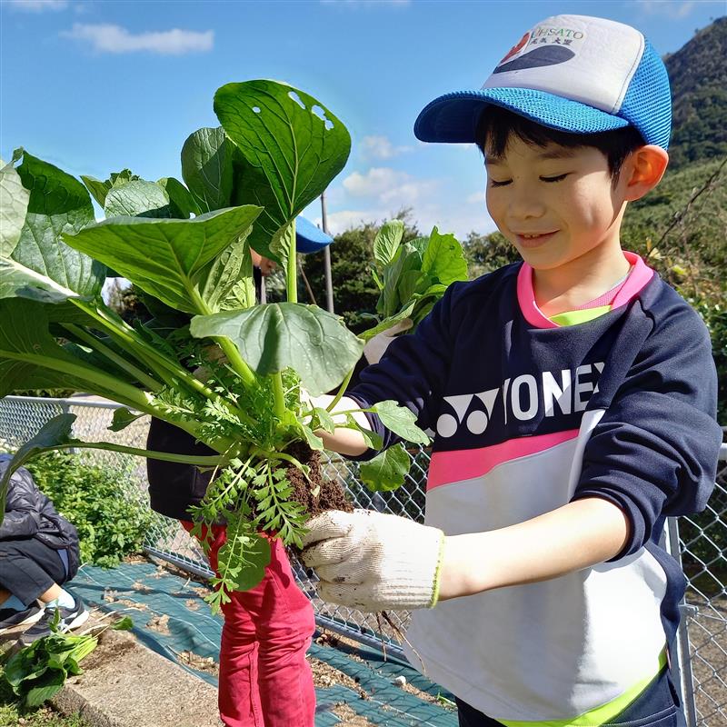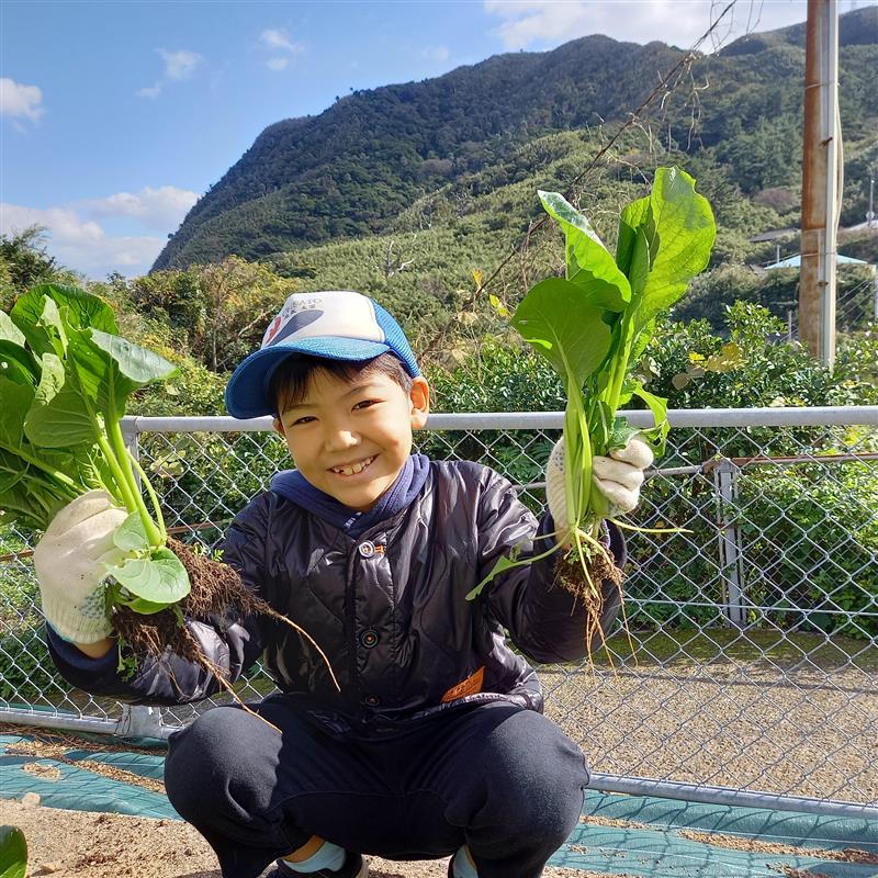 小松菜が大収穫!! 投稿者: 三島村立 三島大里学園 2024年1月13日 1月13日(金) 昨日、小松菜の収穫をしました。 大好きな小松菜が採れて嬉しそうです。 「採ったぞ-!」 「でかいのが採れて嬉しいなぁ!」 次は、ブロッコリーが採れそうです。