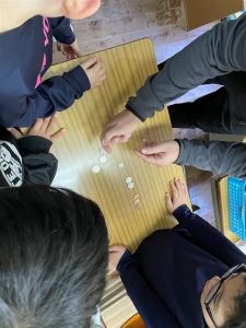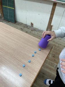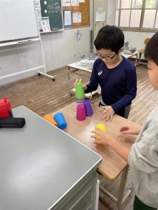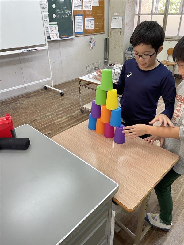 カップスでサイコロを縦に並べるのをみんなでやりました。