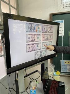 アメリカの紙幣のことやコインのことを教えてもらいました。