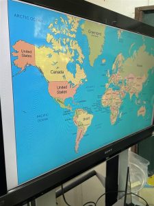 クイズ「アメリカはどこでしょう?」1年生が正解しました。