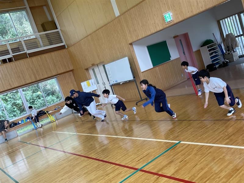 休憩中でも子どもたちは福倉さんと走りたいとなって走っていました。