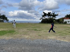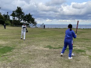 広々としたグランドで野球を楽しみました。そして、どんどん緊張がほぐれていきました。