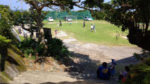 先生たちとサッカーやテニスをしたり,中庭の池で船を浮かべたり。