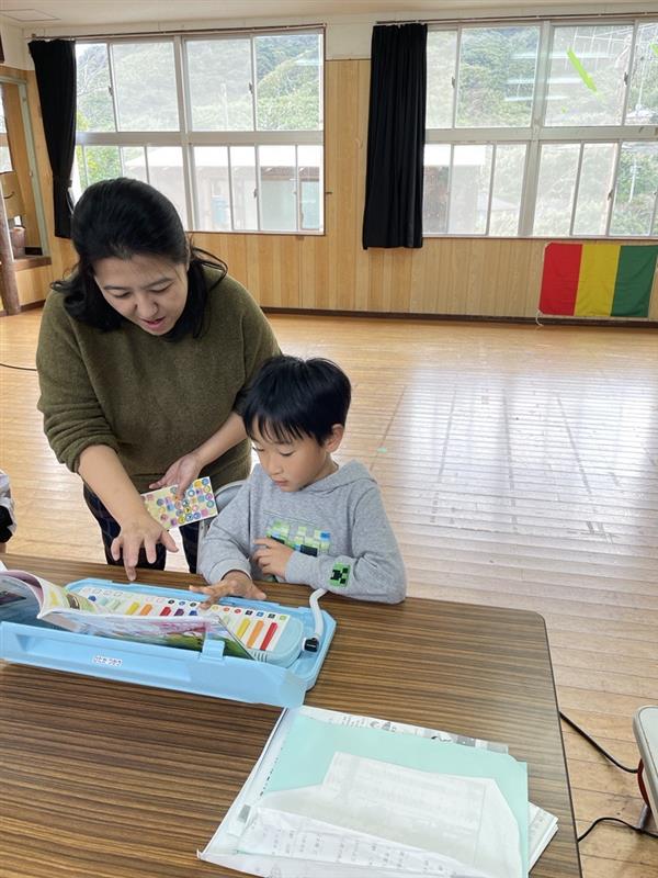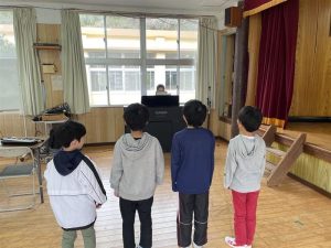 多学年での授業は楽しいです。 投稿者: 三島村立 三島大里学園 2024年2月14日 4校時 音楽 1・2・3年合同 まずは、発声練習。 次に「校歌」 「校歌の歌詞がいいんですよ。」こころに染みます。 卒業式で歌う「旅立ちの日に」も練習しました。 きれいな歌声です。 細かい部分まで丁寧に指導してくださいました。 ここから、個別最適な学びが始まりました。 発表会に向けて個人個人が練習していきました。 何度も机間指導をしながら、本番に向けて練習を重ねていました。 クリアするとキラキラシールがもらえます。 発表会頑張ってね!!🤗