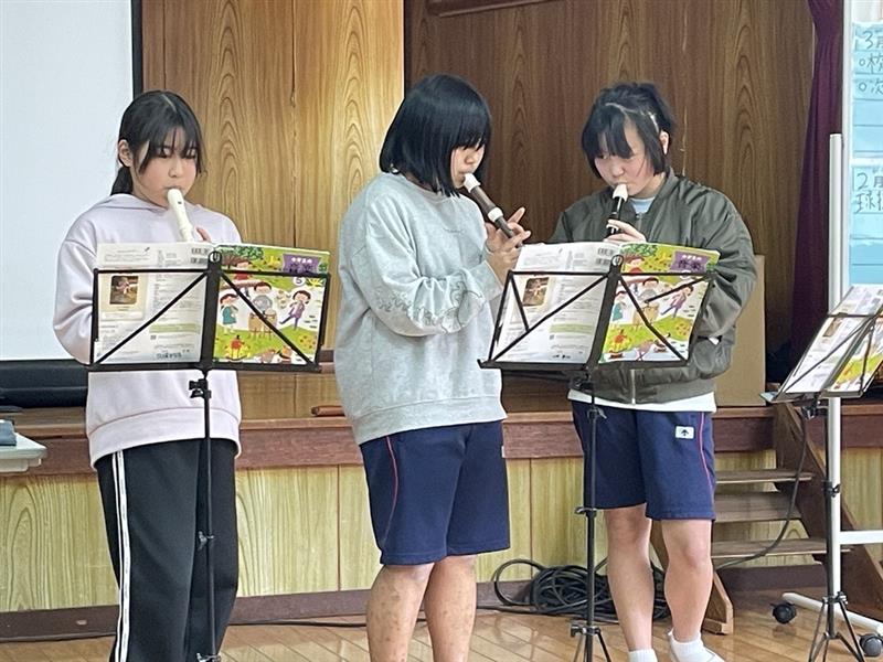 【今回の特技発表】 5・6年生がリコーダーで「威風堂々」を発表してくれました。