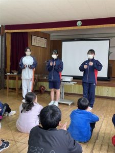 9年生に向けてみんなで応援団風にエールをおくりました。