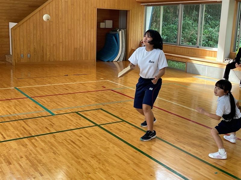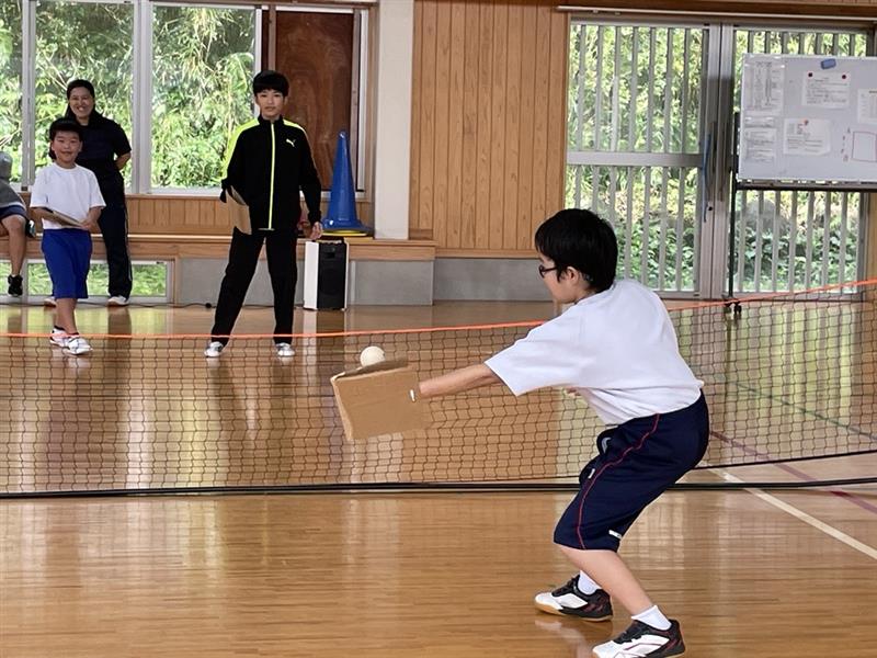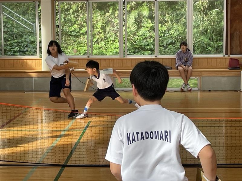 大里学園・片泊学園「テニピン」大会 投稿者: 三島村立 三島大里学園 2024年2月22日 【体育】1校時~3校時 大里学園・片泊学園前期合同 「テニピン」大会 簡単なルール説明を行いました。 準備運動をして、 ペアの練習をしました。 細かいルール説明をしました。 最初に大里学園対片泊学園で試合をしました。 ナイスプレーの連発です。ナイスジャンプ!! 体力が余って、休憩中も走っていました。 後半 大里学園と片泊学園のペアで試合をしました。 こちらもナイスプレイが連発です。 ジャストミート 両校礼。「本当にありがとうございました。」 感想を言ってくれました。「両校で仲良くできたのが良かったです。」 最後に記念写真を撮りました。楽しかったなぁ。