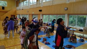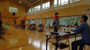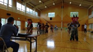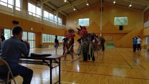踊り揃え 投稿者: 三島村立 三島大里学園 2020年10月8日 運動会で発表予定の『面おどり』 今日は,実際に面をかぶり,衣装を着て踊る『踊り揃え』です。 保護者の方や地唄手さんの協力も得て,皆ばっちりです。 日曜日をお楽しみに。