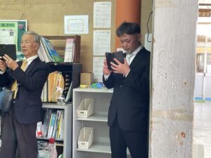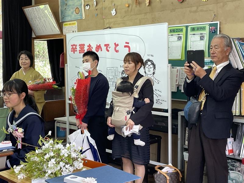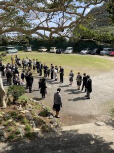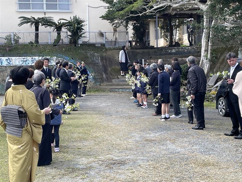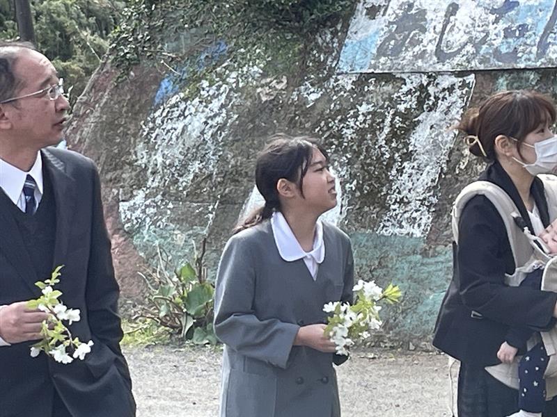みんなで桜を渡し、お祝いの言葉をかけていました。