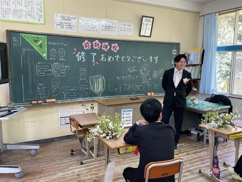 担任の先生からギターの弾き語りで、大事MANブラザーズバンドの「それが一番大事」を歌ってもらいました。