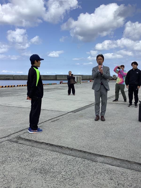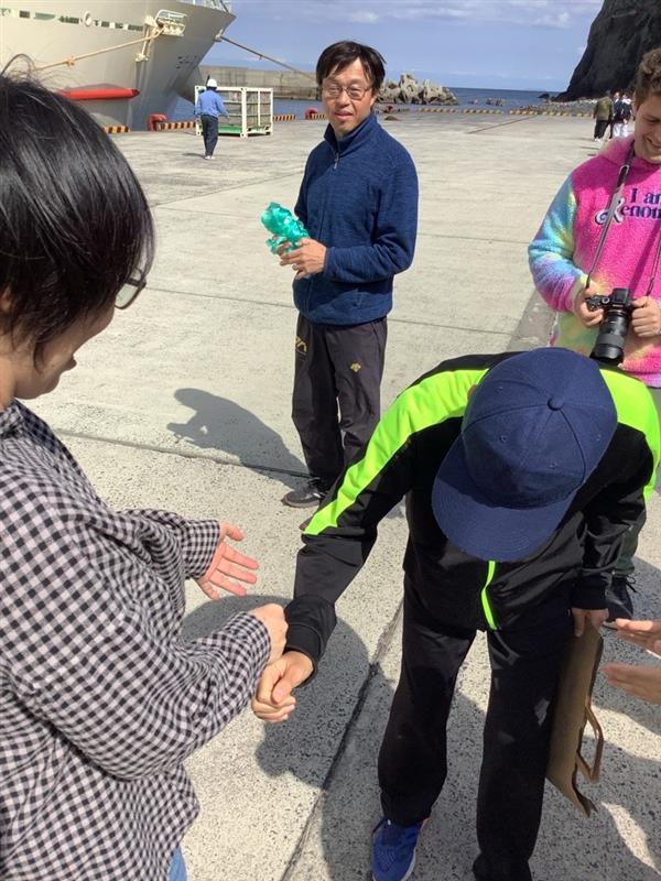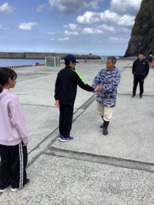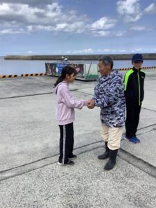 しおかぜハウスの里親さんと握手。かなり照れていましたが嬉しそうでした。