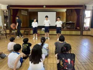 推戴式 投稿者: 三島村立 三島大里学園 2024年6月4日2025年4月10日 6月4日の昼活動で,推戴式が行われました。三島大里学園から卓球部が市総体に出場します。 3人の出場選手が挨拶をし,総体に向けての抱負を述べてくれました。また,後期生が作成したオリジナルの応援ムービーと全児童生徒によるエールが送られました。 自分の力を出し切って,悔いのない総体にしてほしいと思います。大里から思いが届くように,全員で応援しています。 応援ムービーの上映 総体に向けての抱負 全児童生徒によるエール