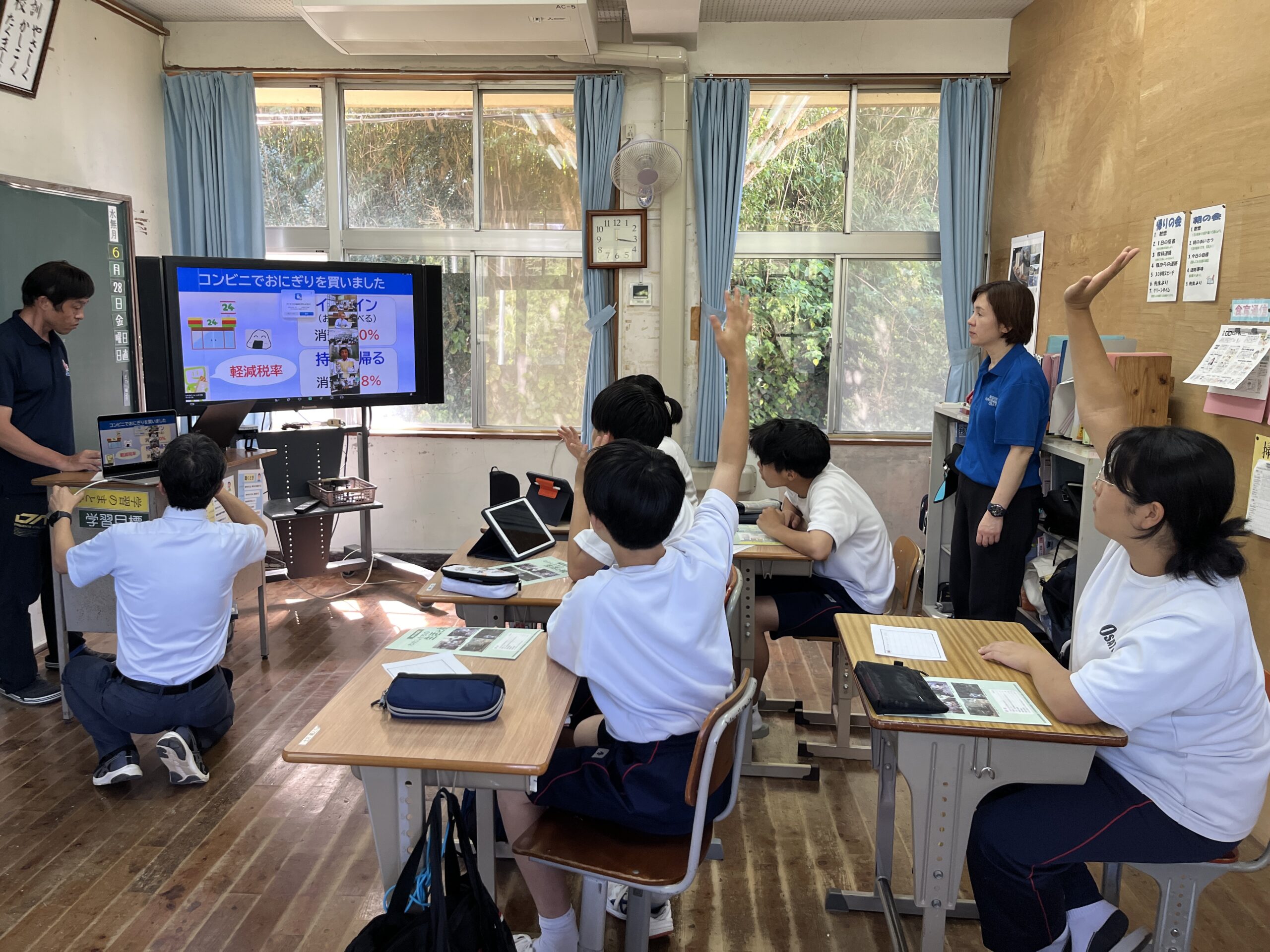 児童生徒にとって実感のある税金は,消費税程度ですが,自分たちの暮らしに関係している税金がたくさんあることを知ることができました。また,軽減税率についても具体的な品物をもとにクイズ形式で考え,楽しみながら学ぶことができました。税金と自分たちの暮らしについて考える貴重な機会となりました。